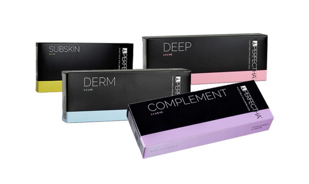 - Perfectha Derm เหมาะสำหรับเติมชั้นตื้น เช่น มุมปาก ริมฝีปาก หว่างคิ้ว อยู่ได้นาน 6 – 12 เดือน