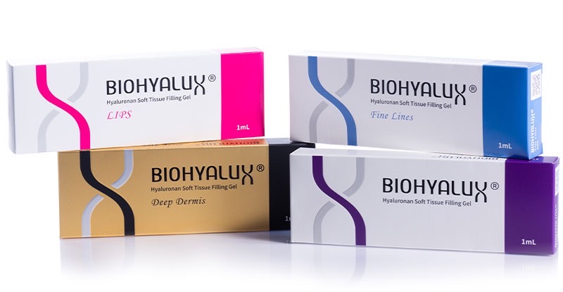 - BIOHYALUX DERM LINES เหมาะสำหรับริ้วรอยลึกระดับปานกลาง บริเวณระหว่างคิ้ว ร่องแก้ม ร่องน้ำหมาก หน้าผาก หางตา เพิ่มความชุ่มชื้น ยืดหยุ่นและดูอิ่มน้ำให้กับผิว อยู่ได้นาน 9 – 12 เดือน